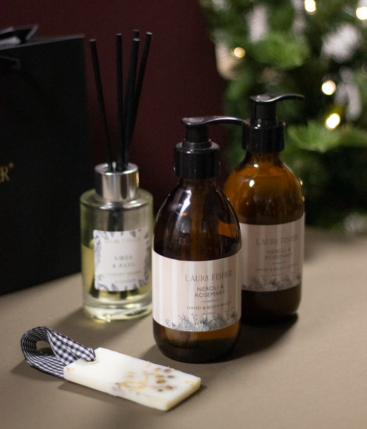 This elegant collection includes our Neroli and Basil 100ml Diffuser with six hand-tied bamboo reeds, our Neroli & Rosemary Essential Oil Hand Wash and Lotion Duo, and a Neroli Room Freshener - together forming a soothing ritual for both home and hands.