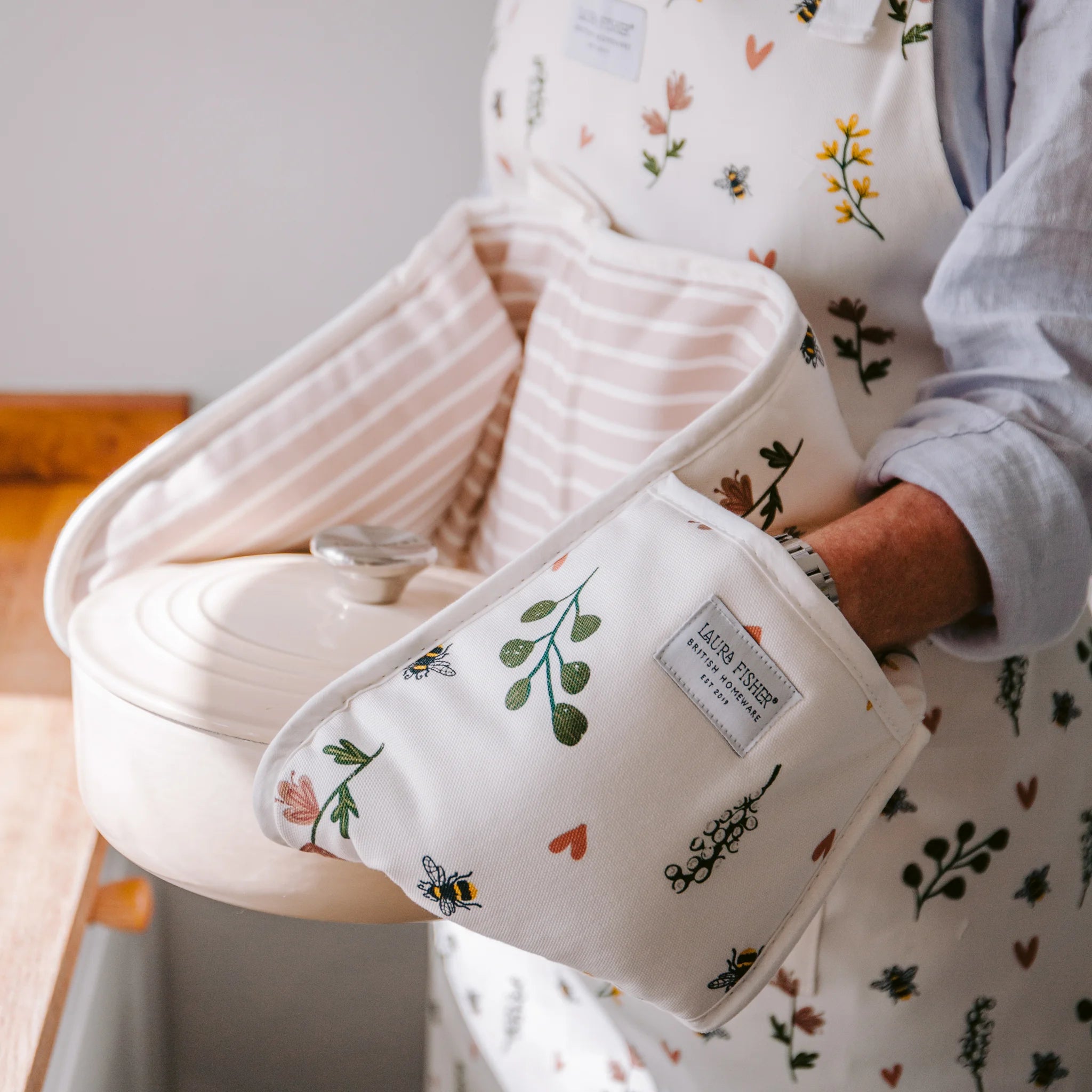 Sweet, calming and delicate. With a dancing bumble bee, sweet meadow flowers and a few wonky hearts our Humble Bumble Design is guaranteed to brighten your kitchen.