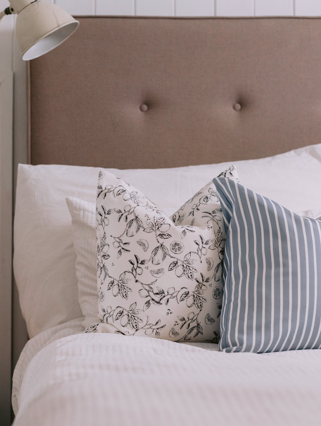 A delicate & classy design featuring a beautiful botanical pencil sketch of limes, mangos & foliage. Blending blending quality, comfort, and design this cushion features luxurious duck feather padding and a hand-stitched logo for a refined touch.