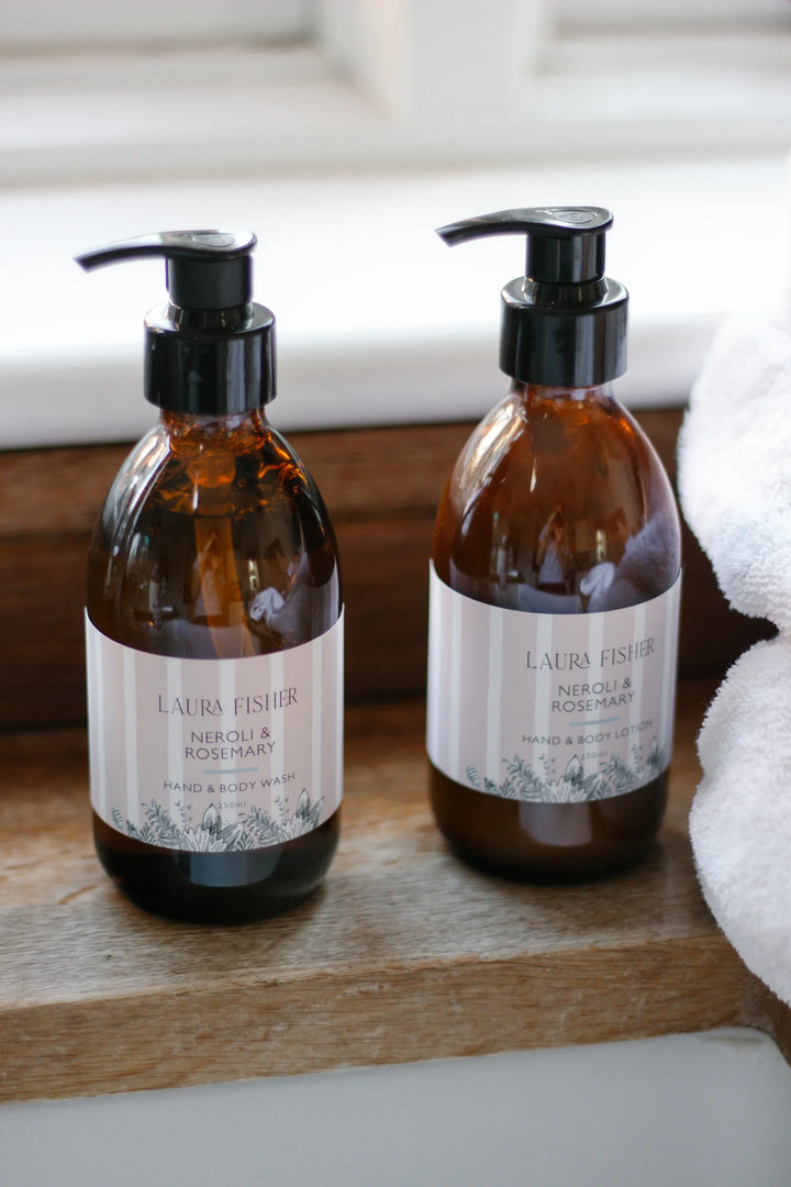 Cleanse & nourish with our essential oil Hand & Body wash. Delicate floral notes of neroli, refreshing rosemary infused with calming lavender. Gently lather into skin to leave your skin feeling refreshed, rejuvenated & delicately scented.